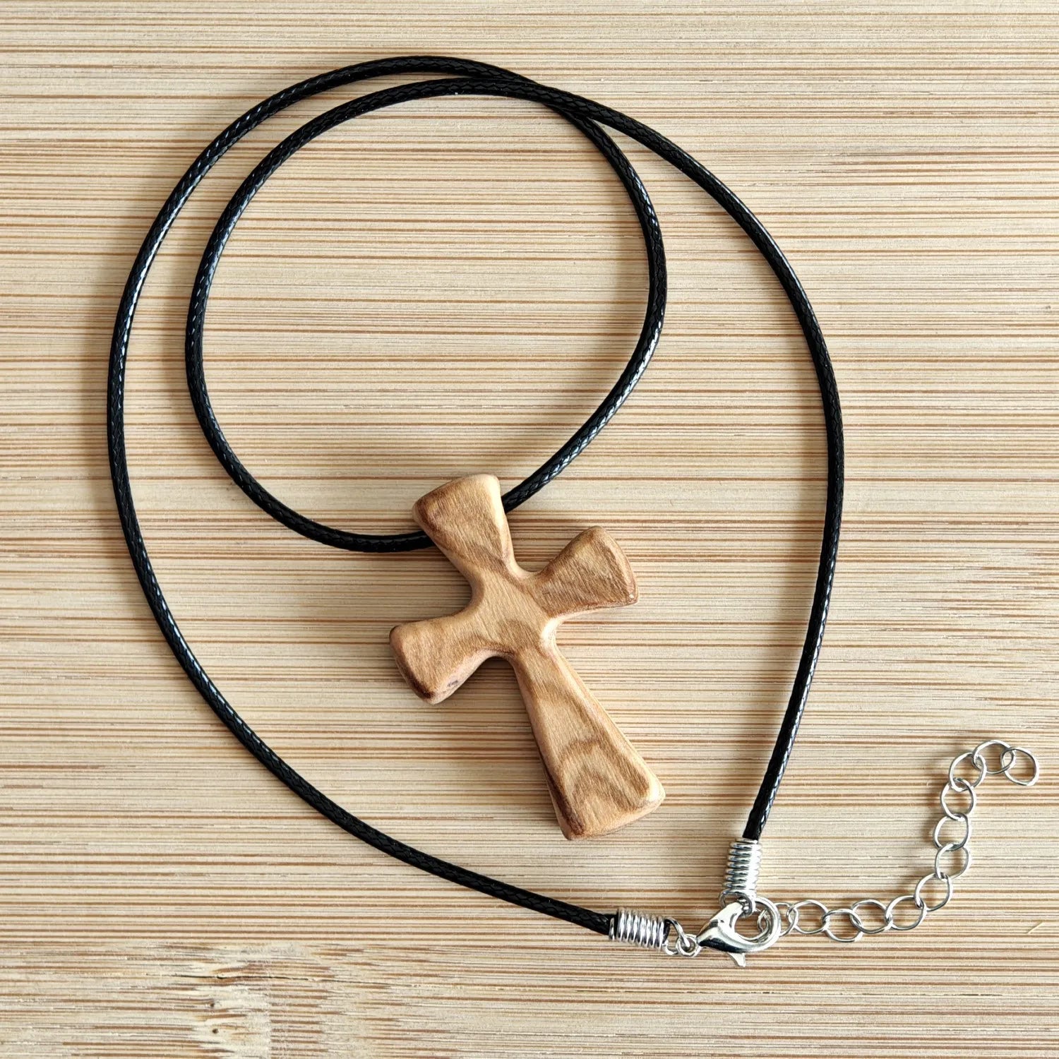Vintage Olive Wood Cross Pendant – Handmade Jesus Talisman Necklace (Christian Faith Jewelry Gift)